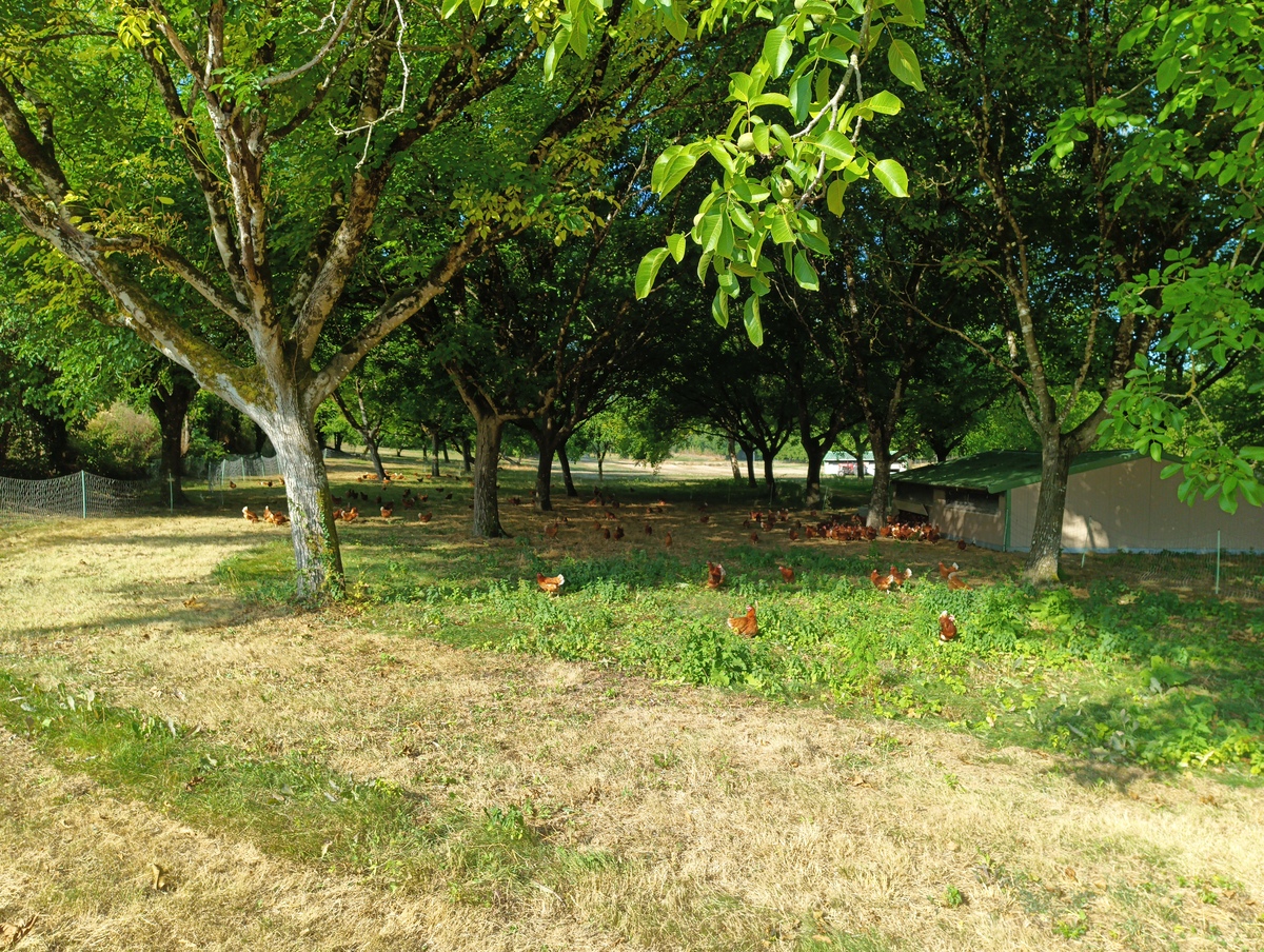 Antoine vous propose des œufs de poules élevées en plein air dans des cabanes déplaçables, et nourries avec un concassé de céréales qu’il cultive ou achète à ses voisins cultivateurs. Les poules sont élevées sur un parcours de 6ha dont 3 sont en noyers, idéal pour que les poules profite d’une belle ombre l’été mais également pour que les noyers profite d’une excellente fertilisation naturelle. Il propose donc aussi des noix. Il transforme également sur la ferme les poules en rillettes à la graisse de canard ou à la graisse de cochons, en confits de poules à la graisse de canard et des gésiers confits.
