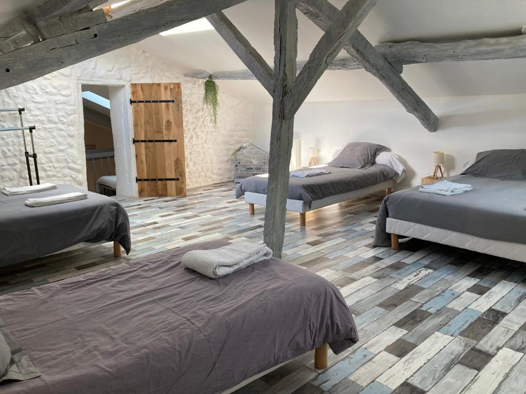 Le Gite Cabosse is a large holiday home with swimming pool in the heart of nature. Restored and equipped for 13 people, this house welcomes you as a family or with friends in an exceptional setting, with its large, peaceful garden overlooking the surrounding countryside, petanque area and footpaths for walking and mountain biking at the foot of the house. Picturesque villages and shops nearby.