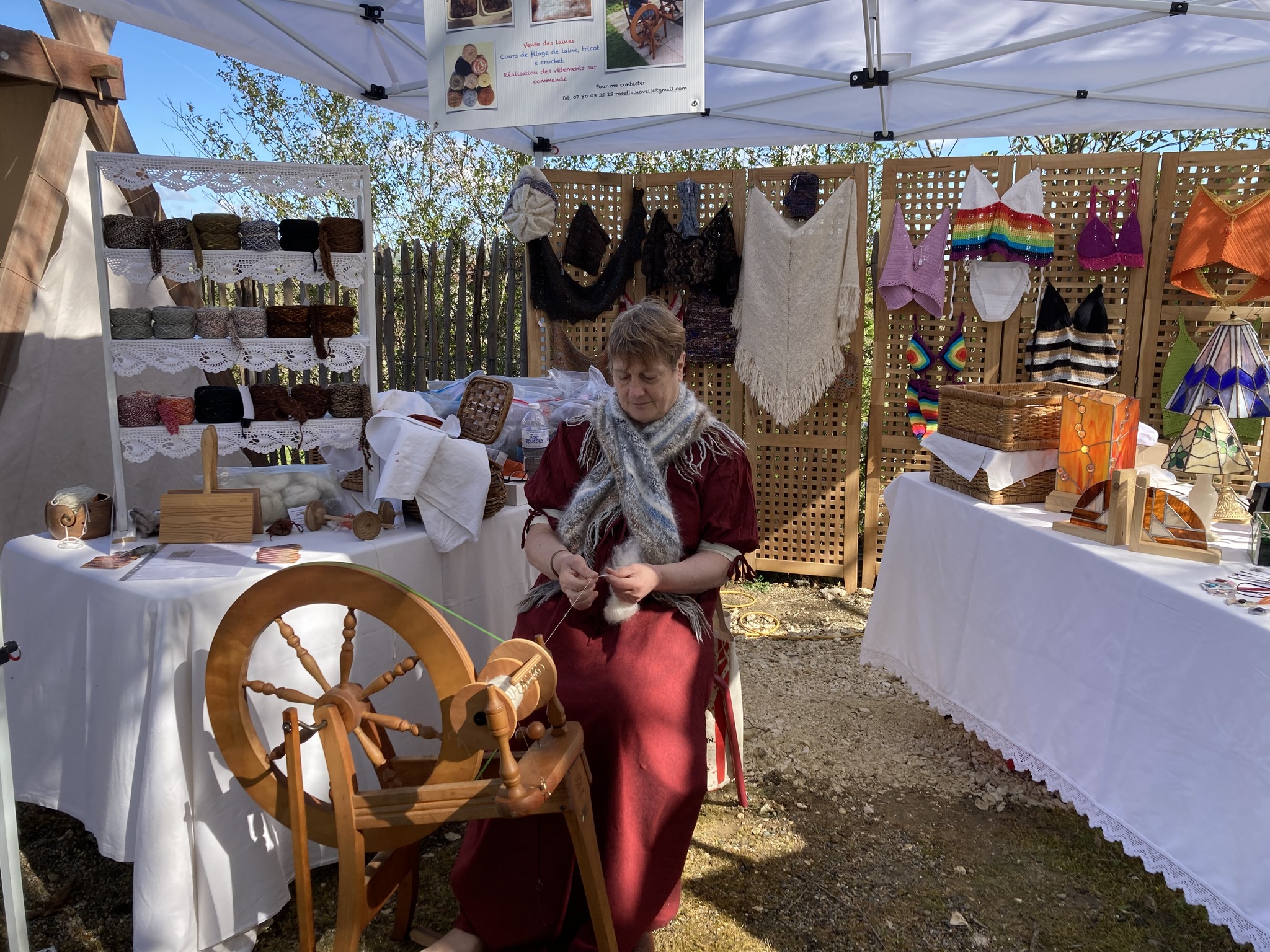 Sur place : vente de pelotes et vêtements tricotés à la main.