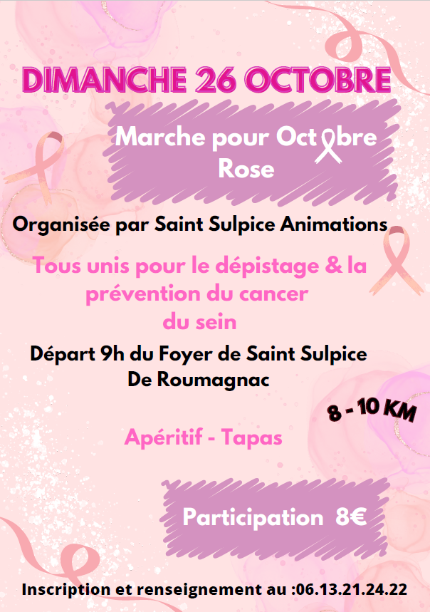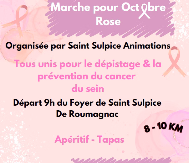 Marche pour Octobre Rose 8/10 kms – Départ 9h du foyer rural