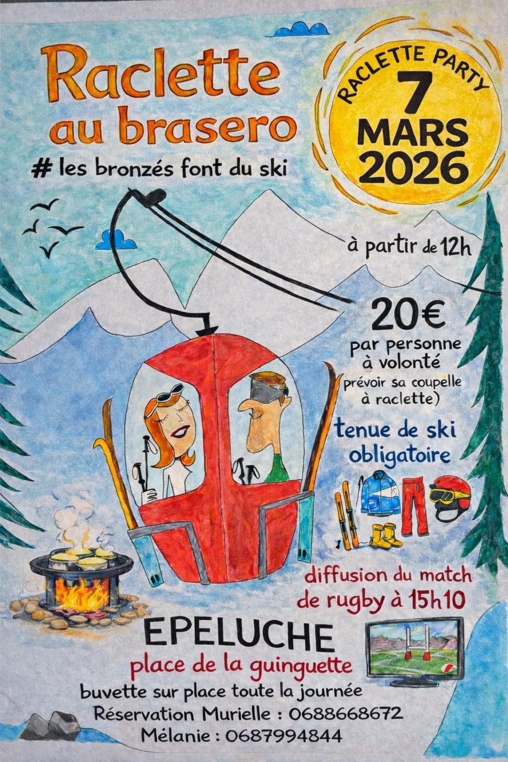 Raclette au brasero et diffusion du match de rugby à 15h10