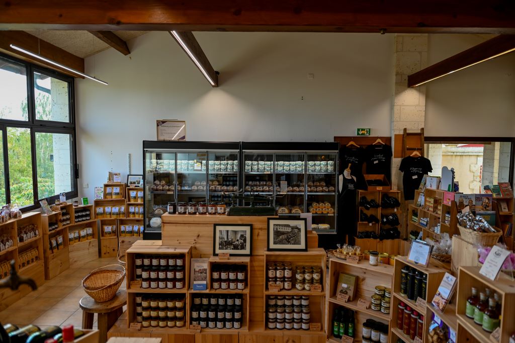 Surplombant le village d’Echourgnac, l’abbaye Notre-Dame de Bonne Espérance fabrique le célèbre « Trappe d’Echourgnac« , un fromage au lait de vache nature ou affiné au vin de noix, mais aussi une tomette au lait de brebis. Ces fromages sont disponibles toute l’année à la boutique, ainsi que d’autres productions des sœurs -confitures, miel, tisanes-, et une sélection de produits de l’artisanat monastique.
