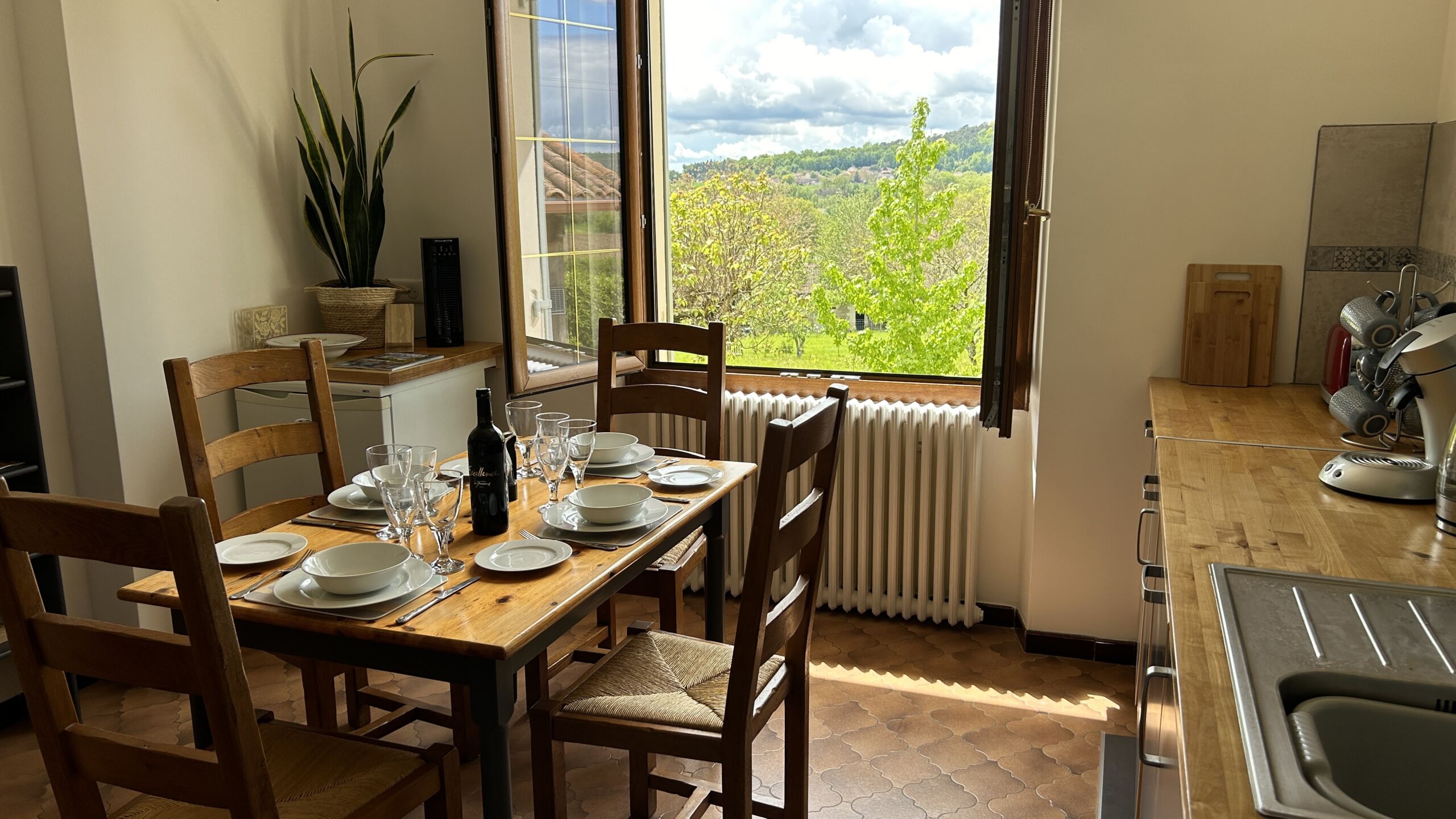 Appartement indépendant au premier étage au bord d’un village avec tous commerces, bars, restaurants, baignade. A proximité de sentiers de randonnée. Piscine couverte, jardins et grand terrain a disposition.
