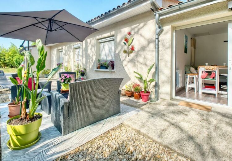 Le gîte est un appartement/studio indépendant mitoyen à la maison des propriétaires, avec entrée privée et accès sécurisé par portail électrique.
