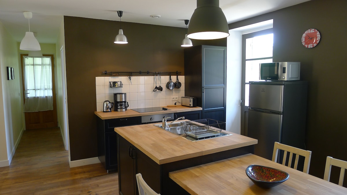 Ce gîte de 59m2 bénéficie d’une vue qui surplombe la rivière de la Dronne et d’un accès direct à la baignade ou à la balade en canoés.